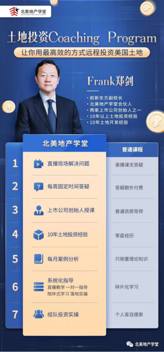 同时,我也已经报名了北美地产学堂的土地投资Coaching方面的课程。